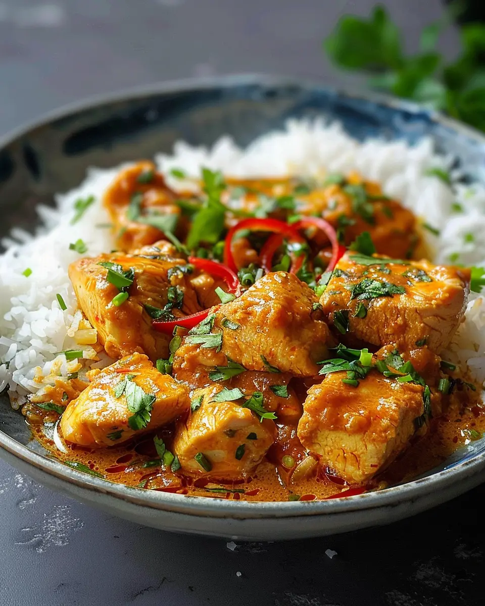 Once prep is done, expect around 30-40 minutes for cooking. This includes simmering the chicken in that rich, flavorful coconut sauce until it’s perfectly tender.