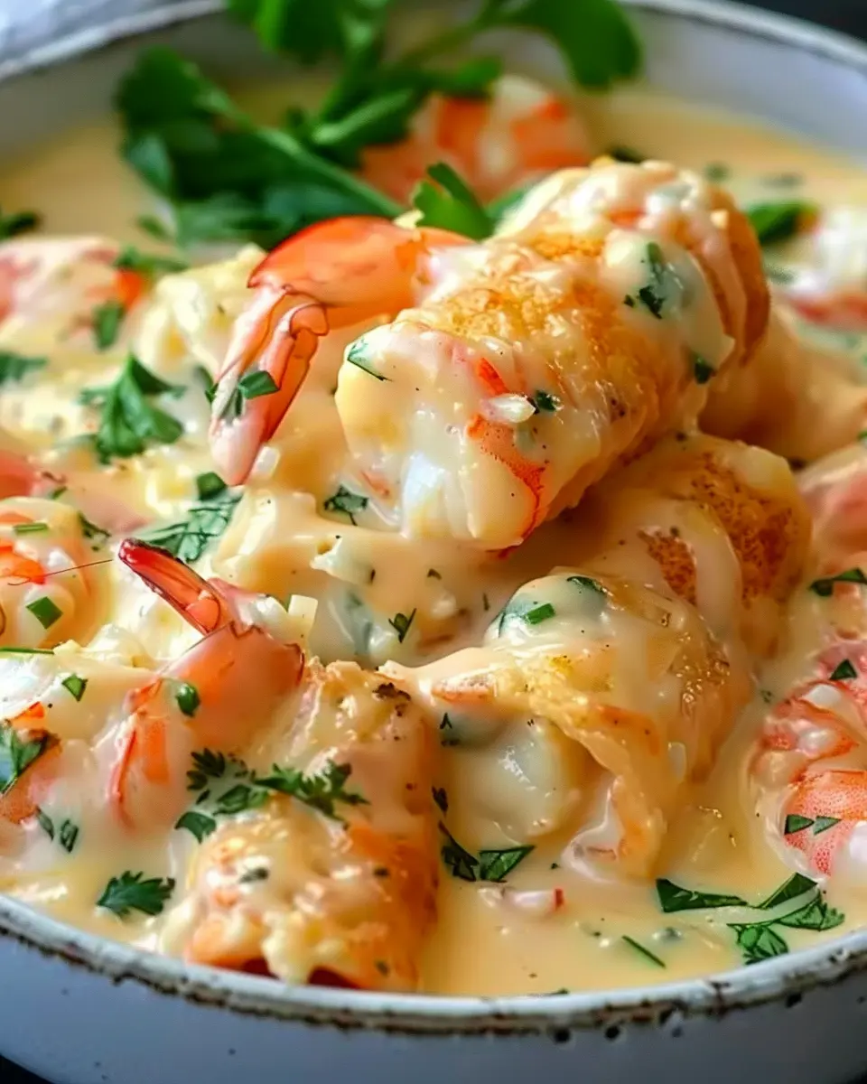 • Creative Cocktails: Serve your dish with mocktails or fizzy beverages like sparkling lemonade to cut through the richness of the cheese and seafood.