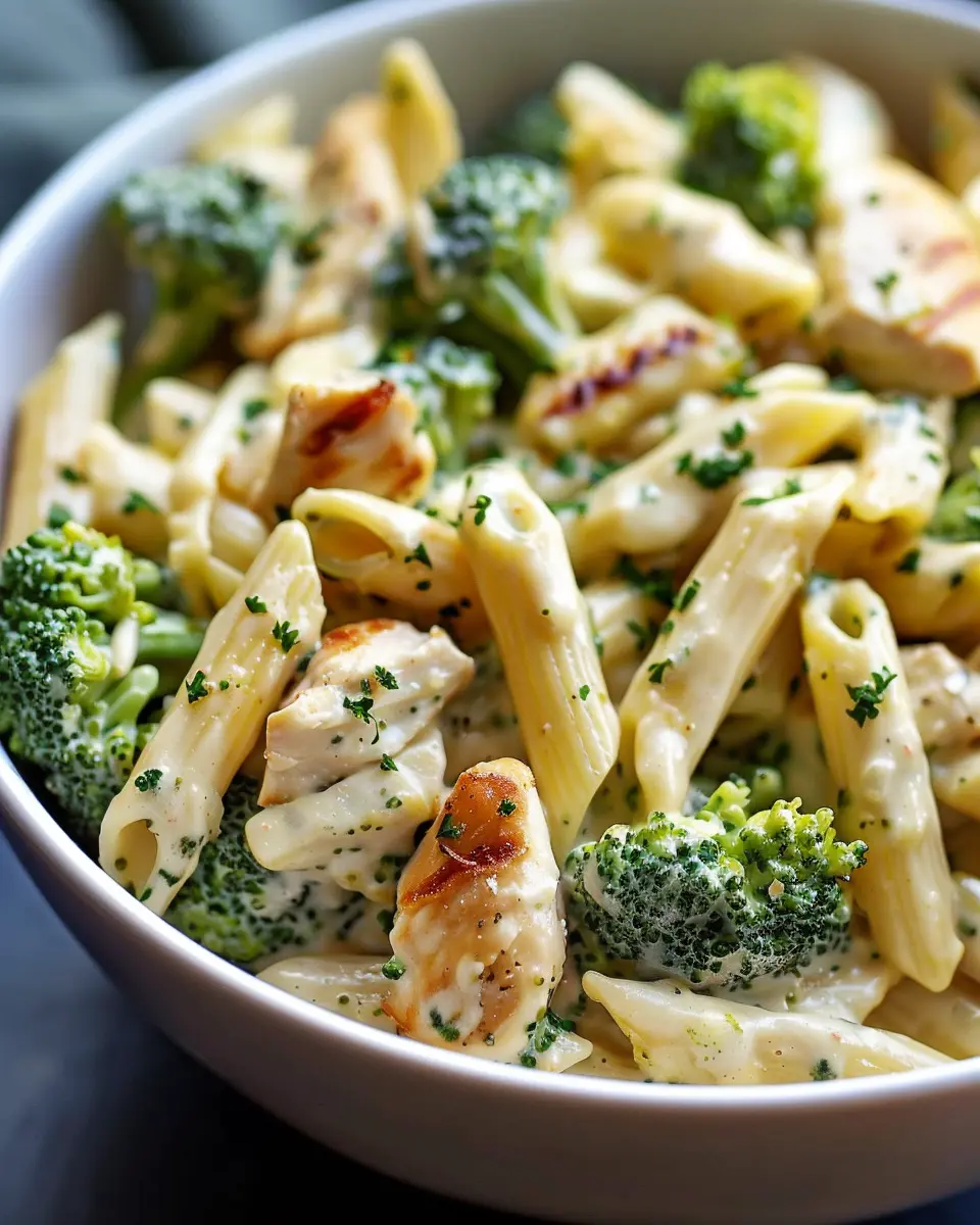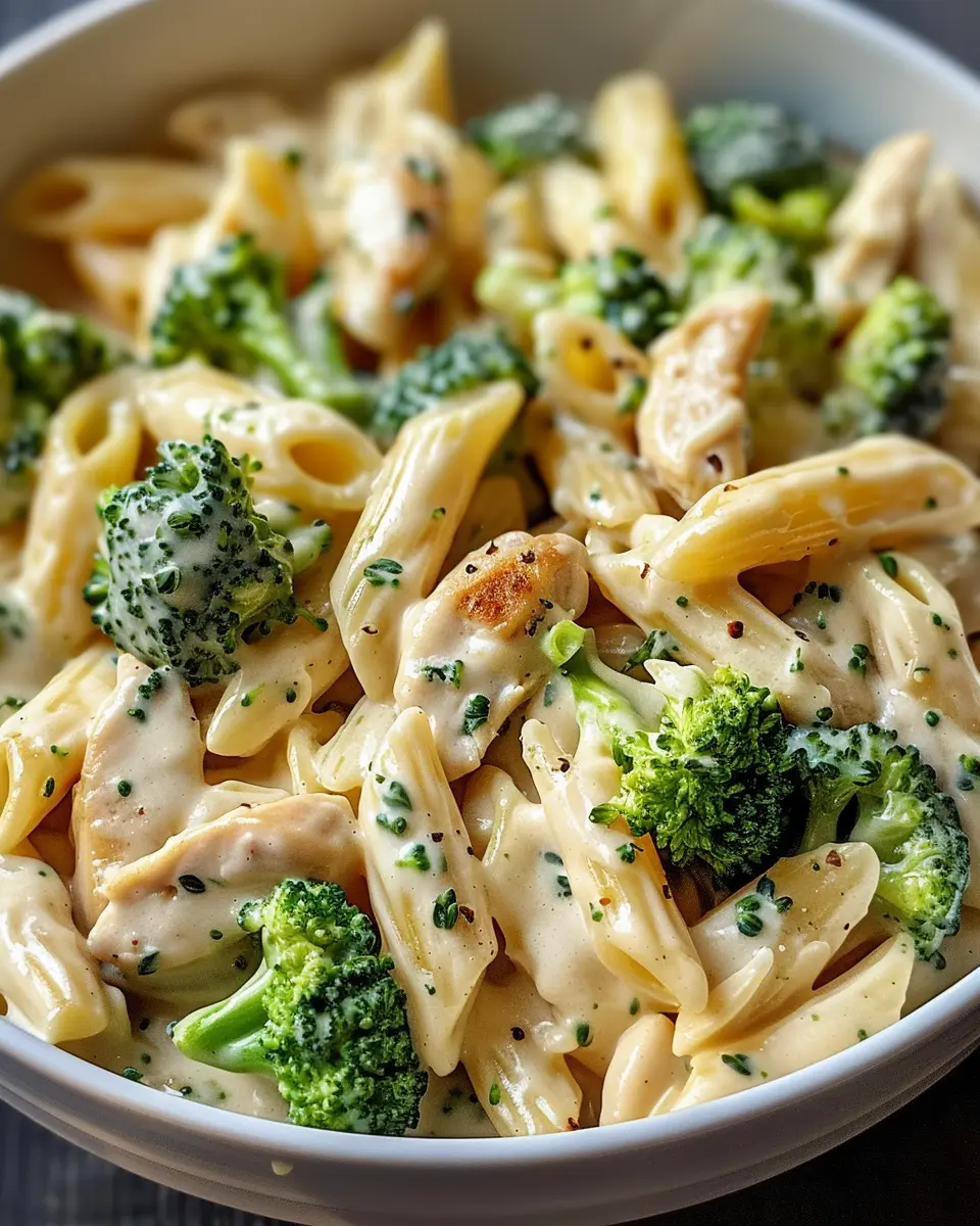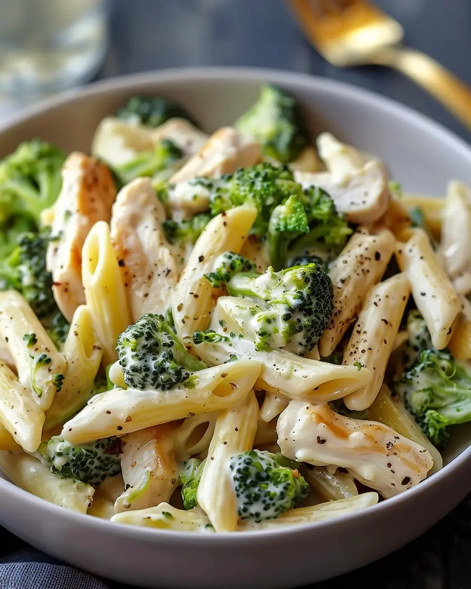 A comforting and delicious creamy dish that combines chicken, broccoli, and penne pasta, perfect for a cozy weeknight dinner.