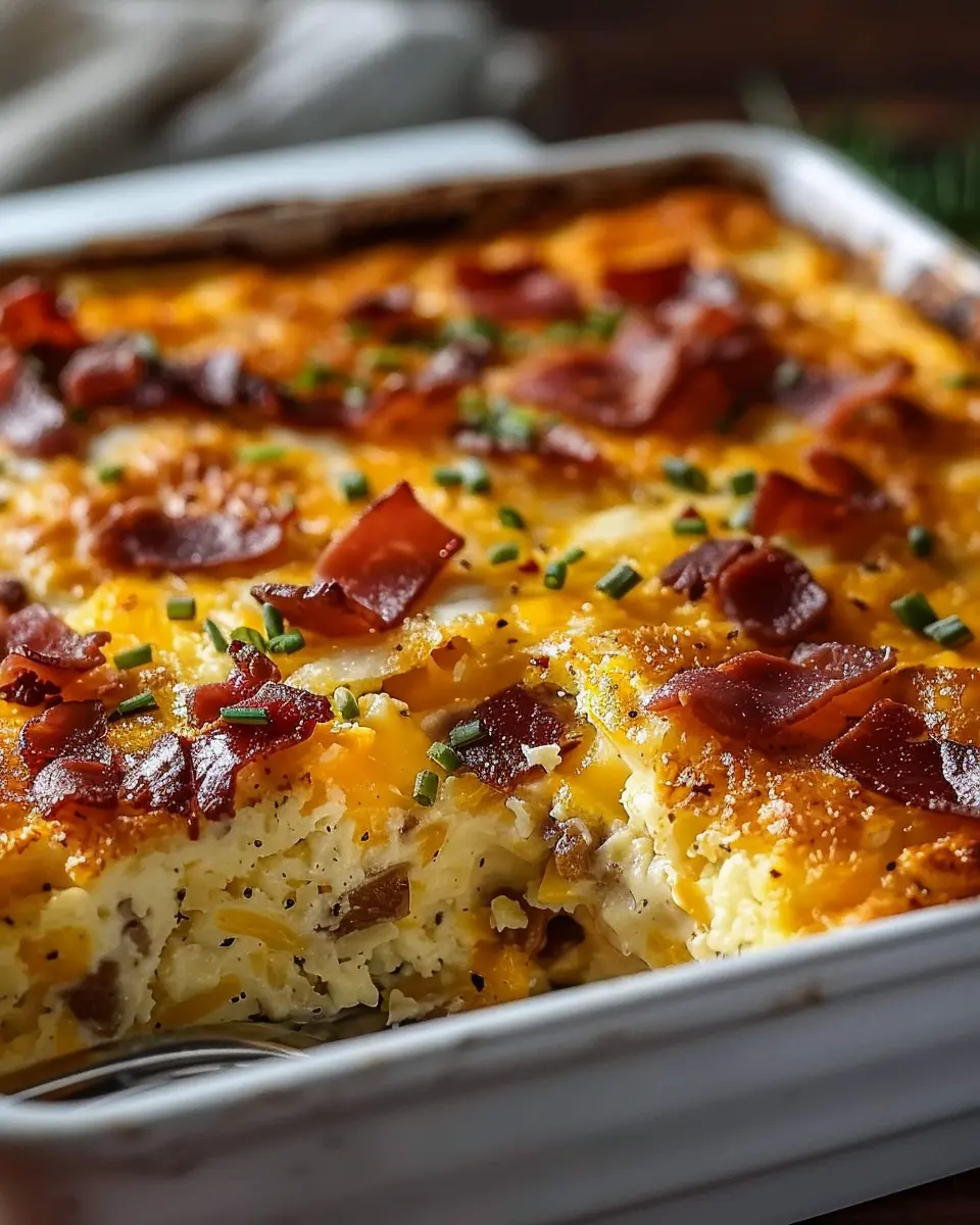 PrintEasy Crack Breakfast Casserole with Turkey Bacon and Chicken Ham