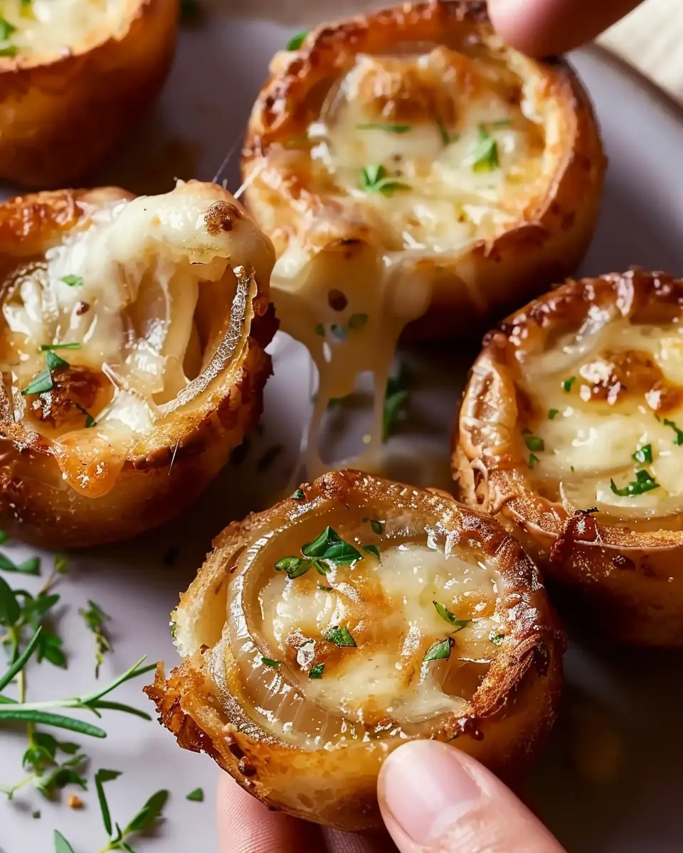 • Perfect for any occasion: Whether you’re hosting a gathering, looking for a unique appetizer, or simply wanting to enjoy a comforting snack while binge-watching your favorite series, French Onion Soup Bites hit the spot. They’re versatile enough to be served at a fancy dinner or during a cozy night in.