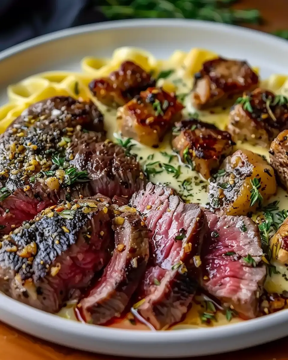 • Slice your rested steak against the grain and add it to the skillet. Gently fold everything together, ensuring each piece of tortellini and steak is enveloped in that rich, creamy goodness.