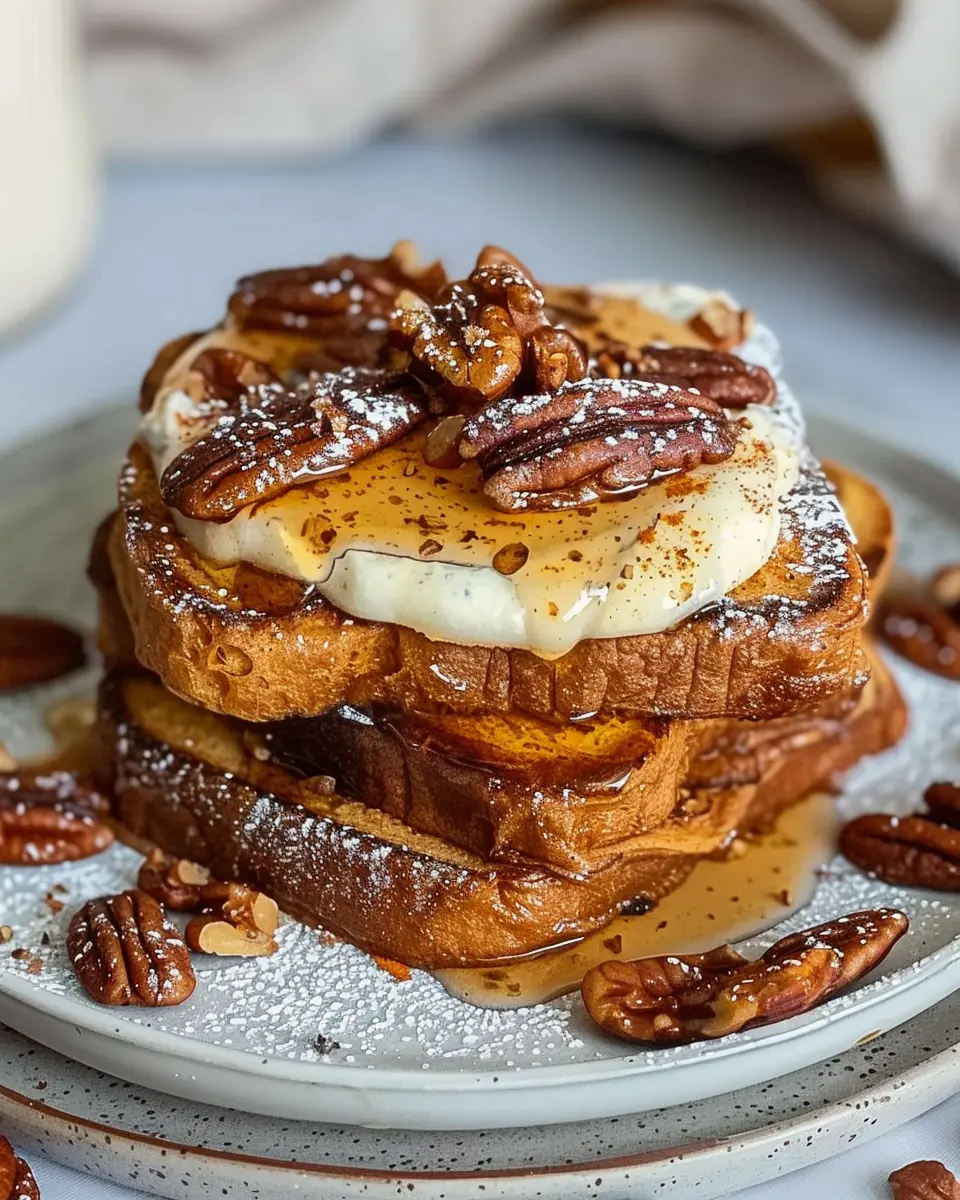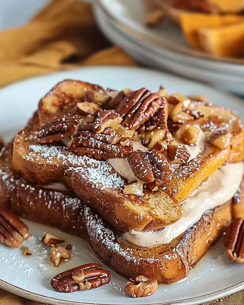 To take your Irresistible Friendsgiving Sweet Potato French Toast to the next level, finish with a delightful pecan crumble: