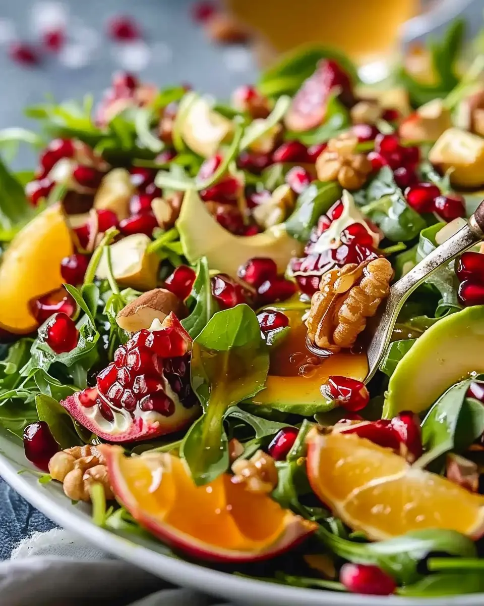 Home » Recipes » Pomegranate Christmas Salad: A Juicy Delight with Honey Mustard Dressing