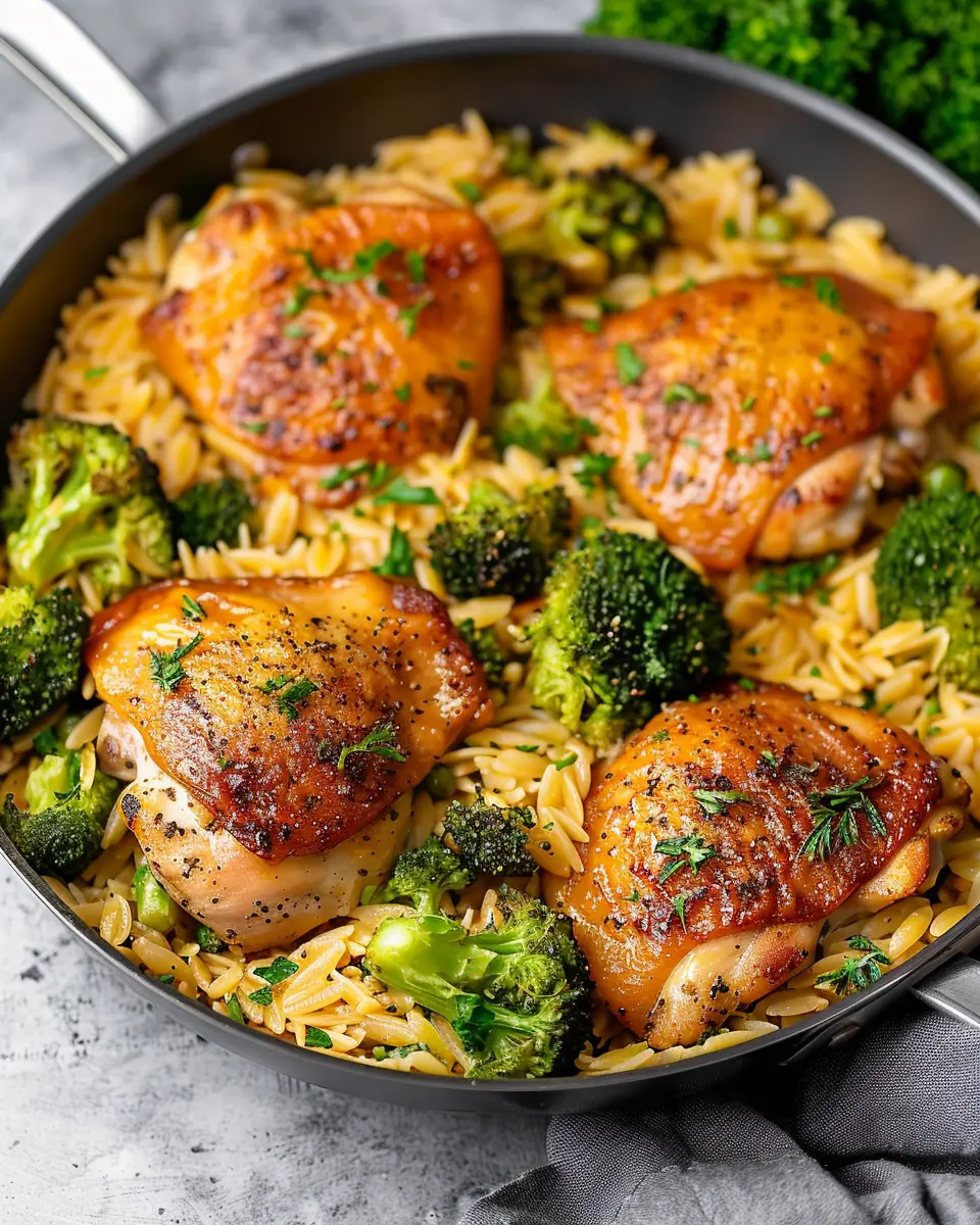 Now, let’s dive into one of the most satisfying and easy-to-make options: Skillet Chicken Thighs with Broccoli Cheddar Orzo. This dish perfectly marries savory chicken, delightful orzo pasta, and fresh broccoli — it’s comfort food that’s both hearty and wholesome.