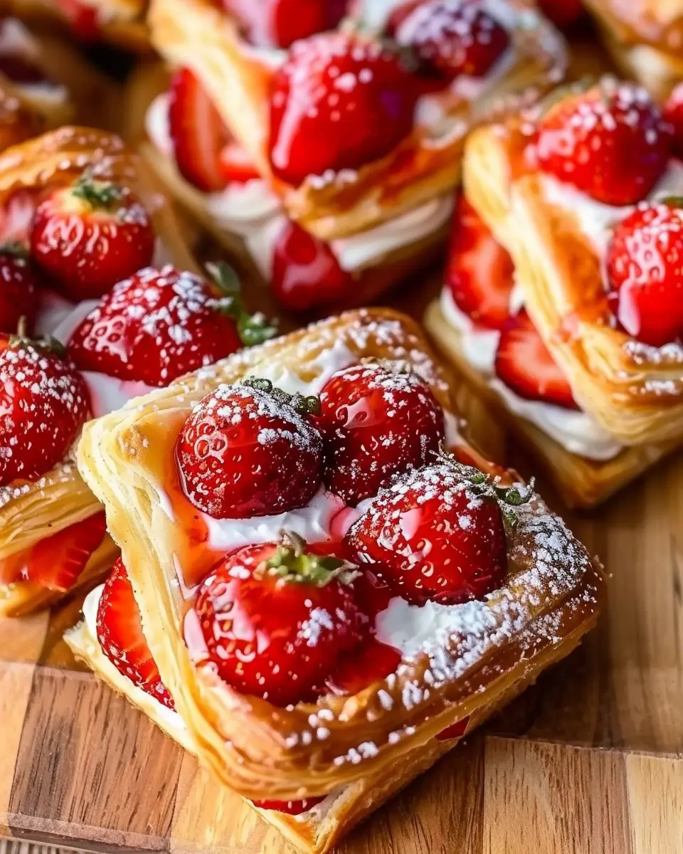 Once out of the oven, let them cool slightly before serving. These strawberry Danishes are perfect for breakfast, brunch, or as an indulgent snack. Enjoying your homemade pastry will surely feel like a little victory in your culinary journey!