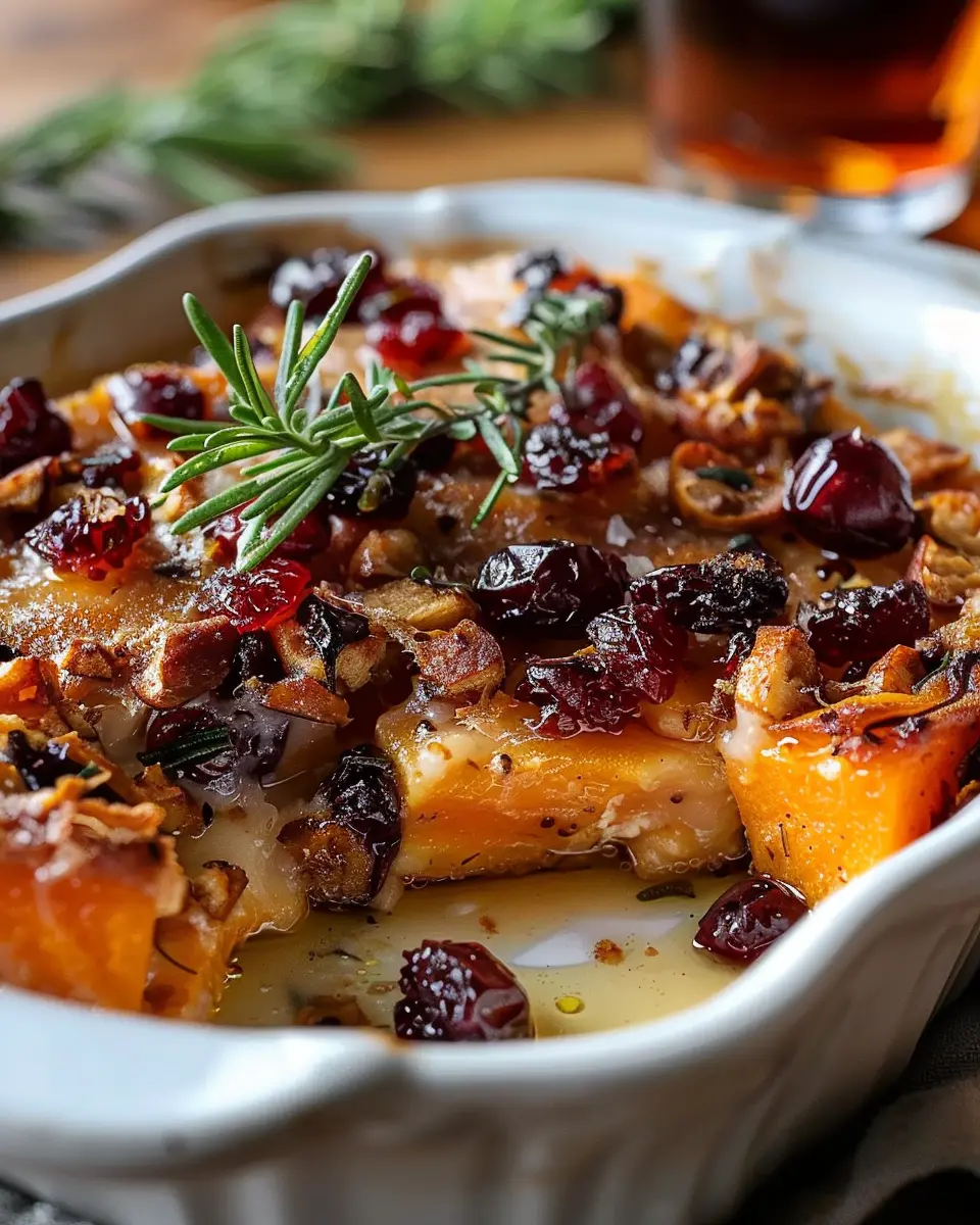 A warm and satisfying dish that combines the sweetness of sweet potatoes with the tartness of cranberries, making it a perfect comfort food for any occasion.