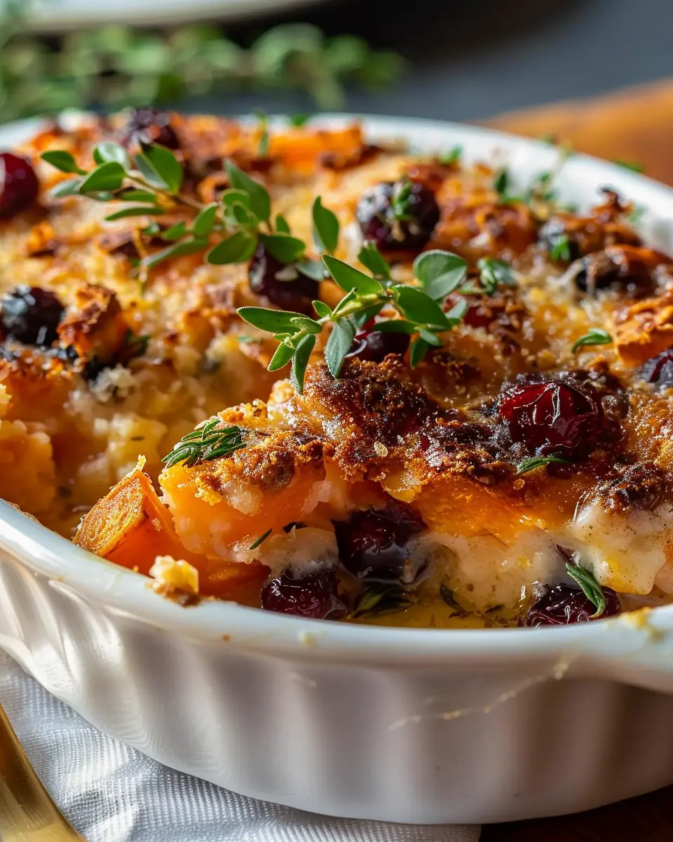 Sweet potatoes are not just nutritious; they are incredibly versatile. They are packed with vitamins A and C, making them a healthy choice that doesn’t skimp on flavor. Combined with the tartness of cranberries, this gratin creates a beautiful contrast that visually and flavorfully stands out on the dinner table.